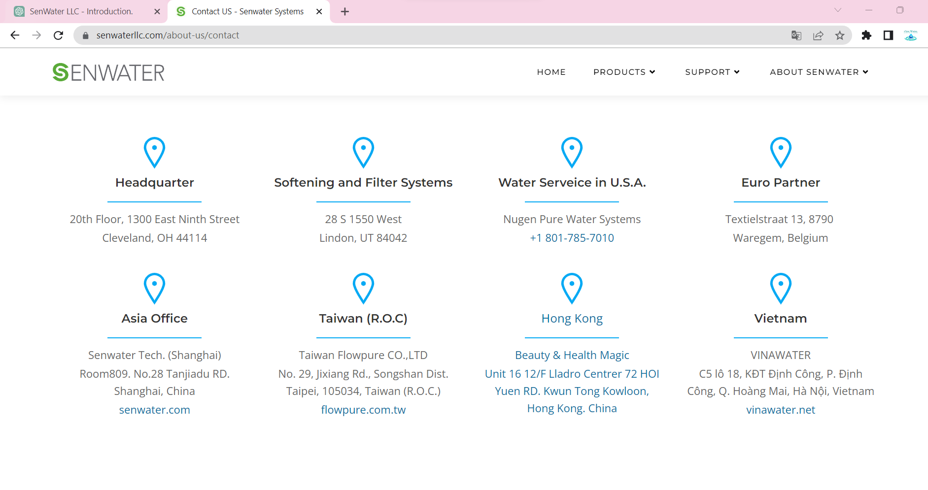 Hiện tại VinaWater đang là đại diện độc quyền của SenwaterLLC tại Việt Nam. https://www.senwaterllc.com/about-us/contact