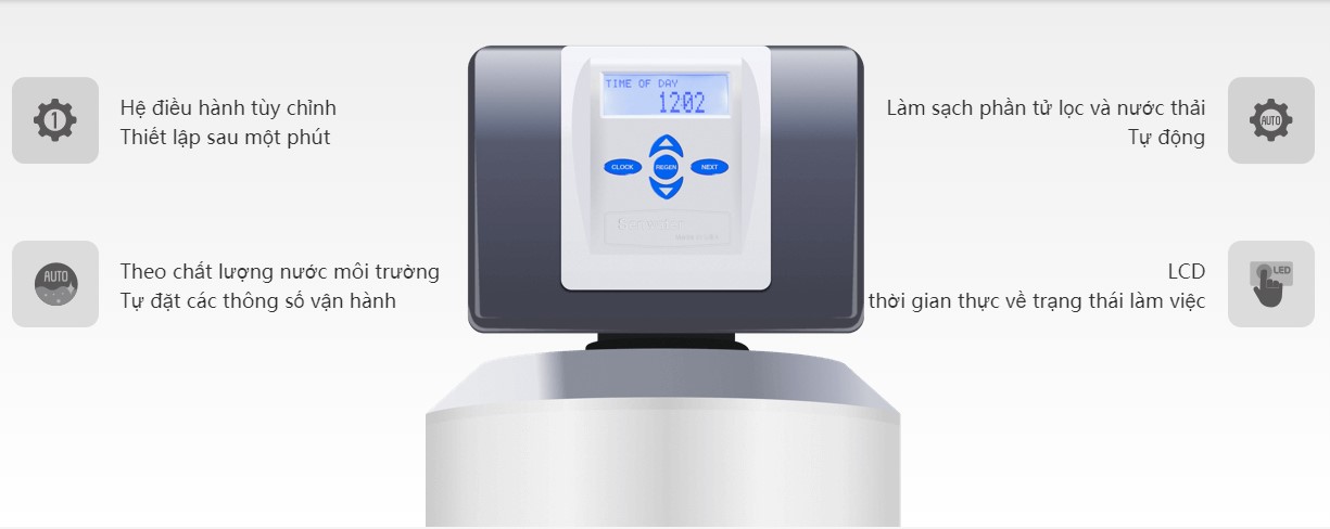 Hệ thống vận hành, tự động làm sạch và xả nước thải đều được điiều khiện định lượng và tự động toàn.