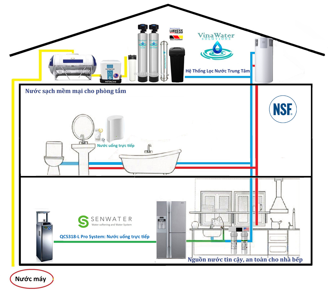 Là một hệ thống gồm nhiều thiết bị lọc nước, được lắp đặt tại đường nước chính đầu nguồn cấp nước đi sử dụng cho toàn bộ ngôi nhà, sau khi nước đi qua hệ thống lọc mới theo các đường ống phân chia tới tất cả các vị trí nhà bếp, nhà vệ sinh, bồn rửa, bồn tắm, vòi sen, bình nước nóng, máy giặt, máy lọc nước nano, tủ lạnh ...