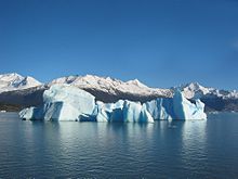 Ở đây có ba trạng thái tập hợp của nước cạnh nhau: tảng băng ở thể rắn, hồ nước ở thể lỏng và hơi nước vô hình trong không khí là nước ở thể khí.